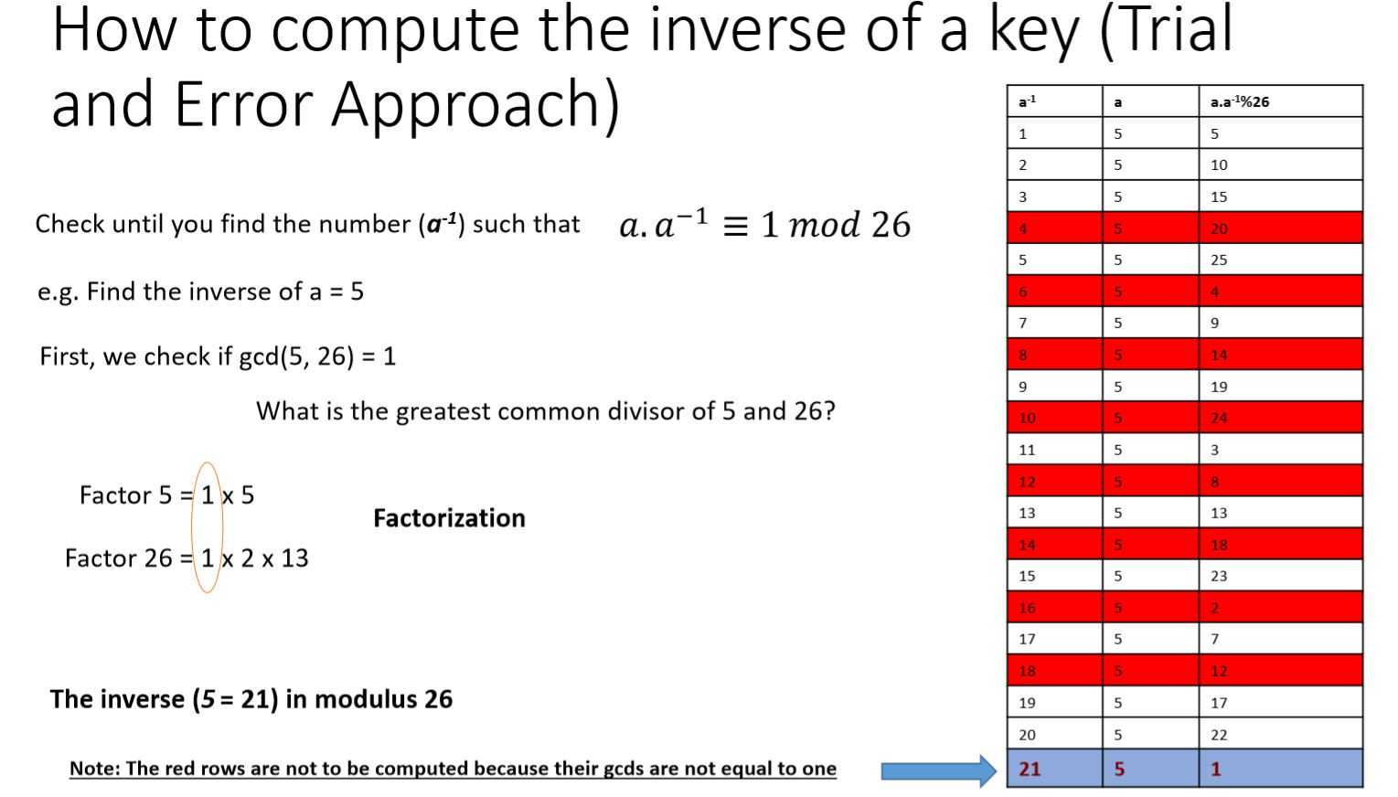 How to compute the inverse of a key (Trial and Error Approach